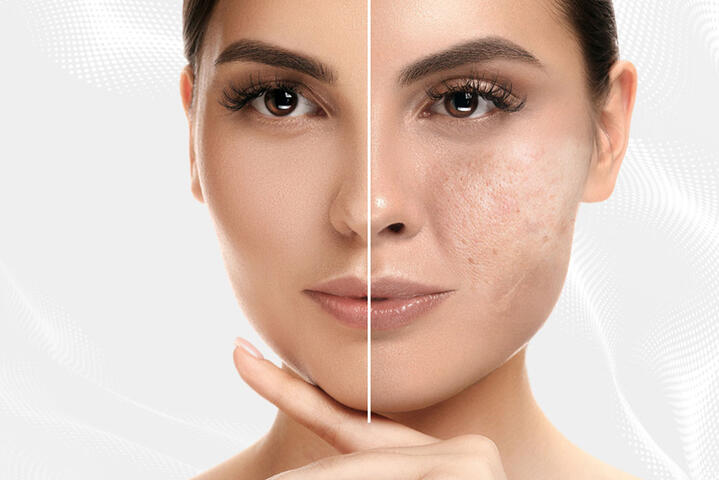 Güneş, yaşlanma ve akne lekelerine karşı etkili çözümlerle eşit tonda bir cilt.
